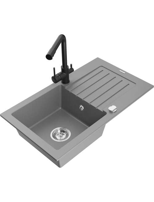 Mexen Pablo zlewozmywak granitowy 1-komorowy z ociekaczem i baterią kuchenną Duero, szary - 6510-71-671600-70