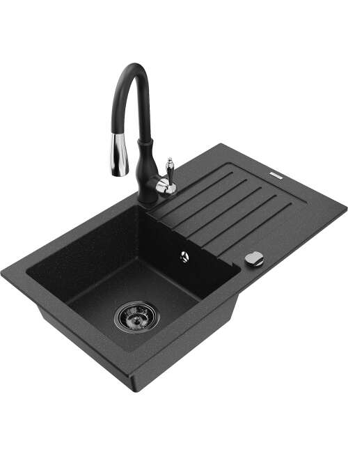 Dane techniczne: Zlewozmywak: Rozmiar: 752x436x161 mm Głębokość komory: 151 mm Wymiary komory: 356x332 mm Średnica odpływu: ø90 mm Typ: 1-komorowy z ociekaczem Rodzaj: Wpuszczany w blat Kolor: Czarny/Srebrny metalik Wykończenie syfonu: Czarny Materiał: Granit (80% kruszywo granitowe 20% żywice) Otwór przelewowy: Tak Otwory: ( bateria, automat ) 2 Montaż: Uniwersalny, możliwość montażu z ociekaczem po lewej lub prawej stronie Wysoka odporność na zarysowania i przebarwienia Odporność na szok termiczny Powierzchnia ułatwiająca czyszczenie Dwa dodatkowe podfrezowane otwory do samodzielnego wybicia ø35 Bateria kuchenna: Materiał: Mosiądz Kolor: Czarny Głowica: Ceramiczna Perlator: Tak Typ: Jednouchwytowa Wysokość baterii: 410 mm Zasięg wylewki: 231 mm |