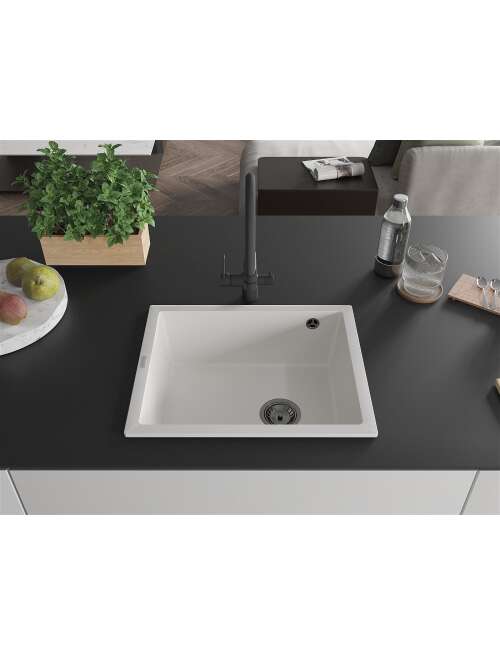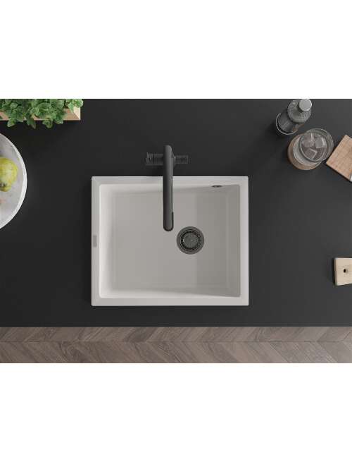Mexen Pedro zlewozmywak granitowy 1-komorowy 560 x 460 mm, biały, syfon czarny - 6508561000-20-B