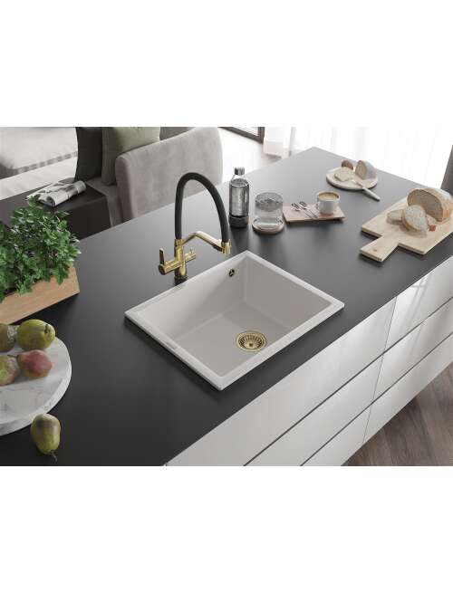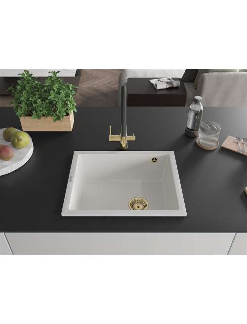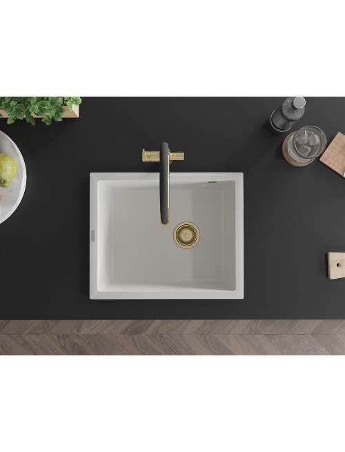 Dane techniczne: Rozmiar: 560x460x200 mm Głębokość komory: 190 mm Wymiary komory: 500x400 mm Średnica odpływu: ø90 mm Typ: 1-komorowy Rodzaj: Wpuszczany w blat, Podblatowy Materiał: Granit Kolor: Biały Wykończenie syfonu: Złoty Otwór przelewowy: Tak Otwór na baterie: Nie Syfon manualny w komplecie Wysoka odporność na zarysowania i przebarwienia Odporność na szok termiczny Powierzchnia ułatwiająca czyszczenie |