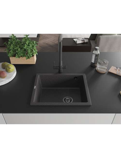Dane techniczne: Rozmiar: 560x460x200 mm Głębokość komory: 190 mm Wymiary komory: 500x400 mm Średnica odpływu: ø90 mm Typ: 1-komorowy Rodzaj: Wpuszczany w blat, Podblatowy Materiał: Granit Kolor: Czarny nakrapiany Wykończenie syfonu: Czarny Otwór przelewowy: Tak Otwór na baterie: Nie Syfon manualny w komplecie Wysoka odporność na zarysowania i przebarwienia Odporność na szok termiczny Powierzchnia ułatwiająca czyszczenie |