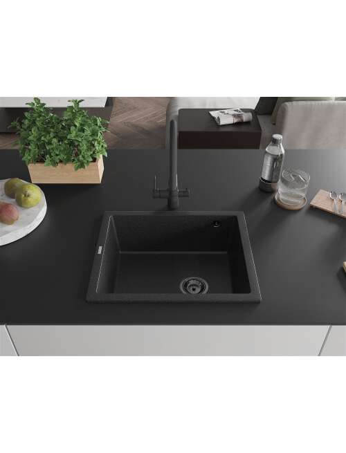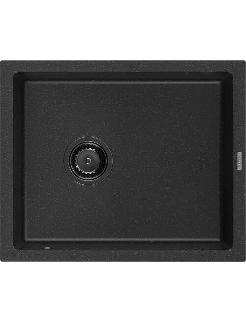 Mexen Pedro zlewozmywak granitowy 1-komorowy 560 x 460 mm, czarny/srebrny metalik, syfon czarny - 6508561000-73-B