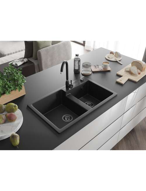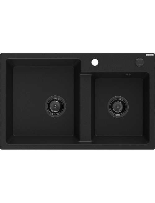 Mexen Tomas zlewozmywak granitowy 2-komorowy 800 x 500 mm, czarny, syfon czarny - 6516802000-77-B