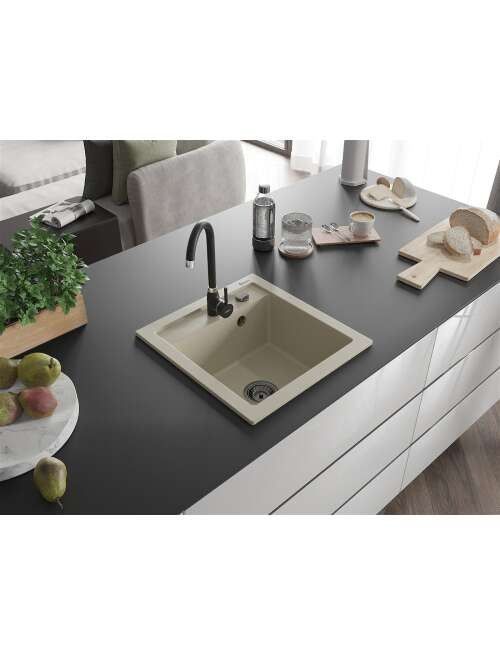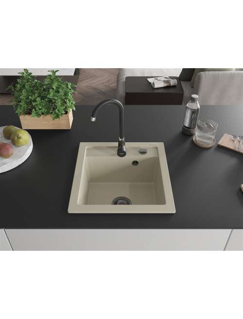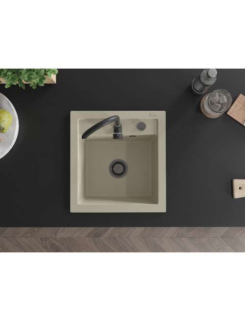 Dane techniczne: Rozmiar: 520x490x210 mm Głębokość komory: 200 mm Wymiary komory: 410x360 mm Średnica odpływu: ø90 mm Rodzaj: 1-komorowy Typ: Wpuszczany w blat Materiał: Granit Kolor: Beżowy Wykończenie syfonu: Czarny Otwór przelewowy: Tak Otwór na baterie: Tak Syfon automatyczny w komplecie Wysoka odporność na zarysowania i przebarwienia Odporność na szok termiczny Powierzchnia ułatwiająca czyszczenie Jeden dodatkowy podfrezowany otwór do samodzielnego wybicia ø35 |