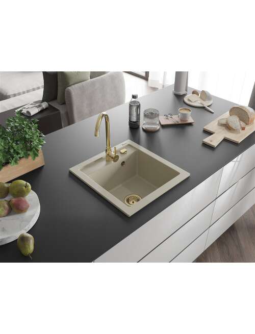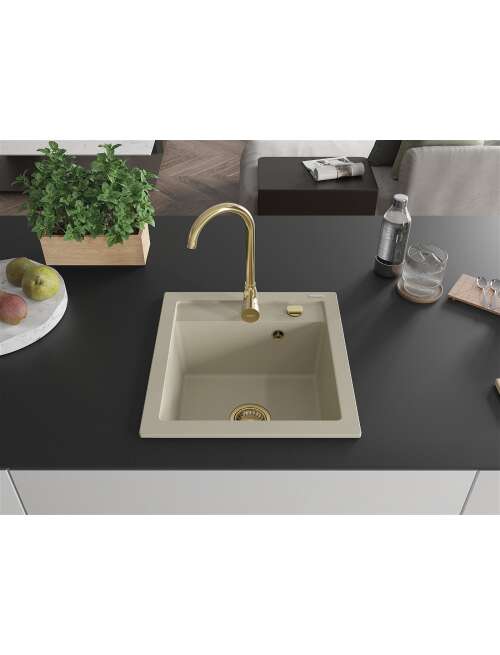 Dane techniczne: Rozmiar: 520x490x210 mm Głębokość komory: 200 mm Wymiary komory: 410x360 mm Średnica odpływu: ø90 mm Rodzaj: 1-komorowy Typ: Wpuszczany w blat Materiał: Granit Kolor: Beżowy Wykończenie syfonu: Złoty Otwór przelewowy: Tak Otwór na baterie: Tak Syfon automatyczny w komplecie Wysoka odporność na zarysowania i przebarwienia Odporność na szok termiczny Powierzchnia ułatwiająca czyszczenie Jeden dodatkowy podfrezowany otwór do samodzielnego wybicia ø35 |