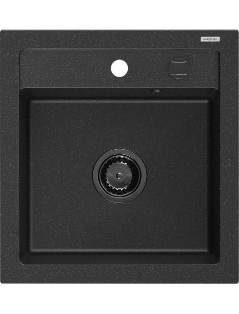 Dane techniczne: Rozmiar: 520x490x210 mm Głębokość komory: 200 mm Wymiary komory: 410x360 mm Średnica odpływu: ø90 mm Rodzaj: 1-komorowy Typ: Wpuszczany w blat Materiał: Granit Kolor: Czarny/Srebrny metalik Wykończenie syfonu: Czarny Otwór przelewowy: Tak Otwór na baterie: Tak Syfon automatyczny w komplecie Wysoka odporność na zarysowania i przebarwienia Odporność na szok termiczny Powierzchnia ułatwiająca czyszczenie Jeden dodatkowy podfrezowany otwór do samodzielnego wybicia ø35 |