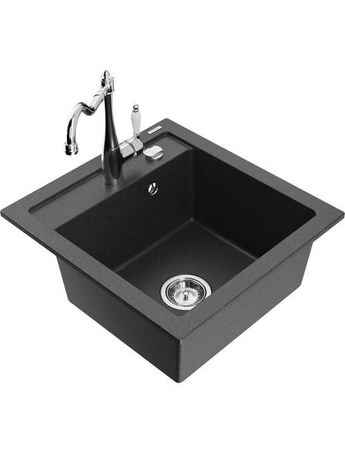 Mexen Vito zlewozmywak granitowy 1-komorowy z baterią kuchenną Carla, czarny nakrapiany - 6503-76-670700-00