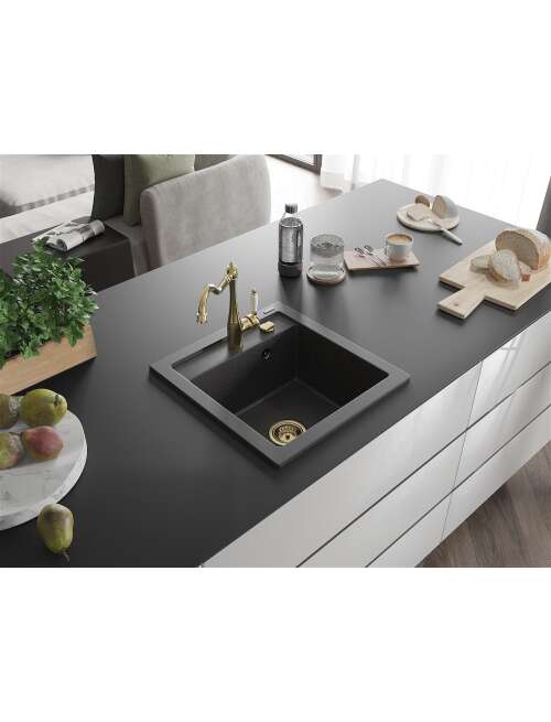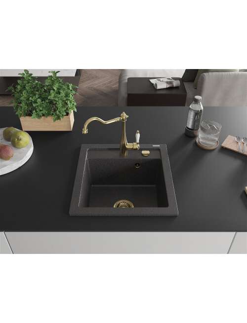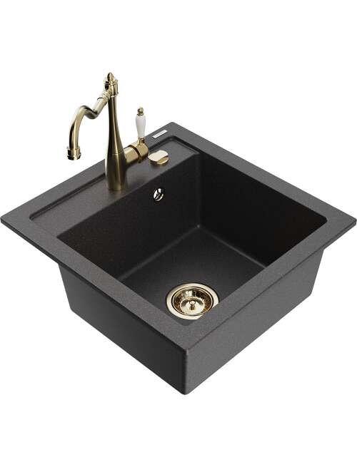 Mexen Vito zlewozmywak granitowy 1-komorowy z baterią kuchenną Carla, czarny nakrapiany - 6503-76-670700-50