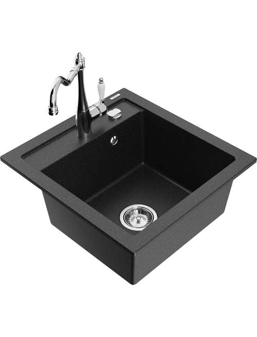 Mexen Vito zlewozmywak granitowy 1-komorowy z baterią kuchenną Carla, czarny/srebrny metalik - 6503-73-670700-00