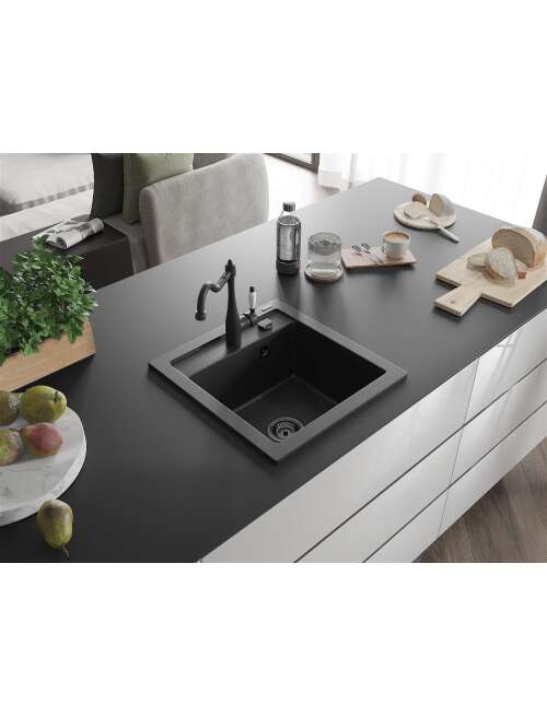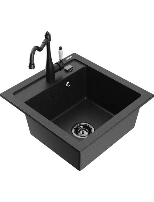 Dane techniczne: Zlewozmywak: Rozmiar: 520x490x210 mm Głębokość komory: 200 mm Wymiary komory: 410x360 mm Średnica odpływu: ø90 mm Typ: 1-komorowy Rodzaj: Wpuszczany w blat Kolor: Czarny/Srebrny metalik Wykończenie syfonu: Czarny Materiał: Granit (80% kruszywo granitowe 20% żywice) Otwór przelewowy: Tak Otwory: ( bateria, automat ) 2 Wysoka odporność na zarysowania i przebarwienia Odporność na szok termiczny Powierzchnia ułatwiająca czyszczenie Jeden dodatkowy podfrezowany otwór do samodzielnego wybicia ø35 Bateria kuchenna: Materiał: Mosiądz Kolor: Czarny Głowica: Ceramiczna Perlator: Tak Typ: Jednouchwytowa Wysokość baterii: 290 mm Zasięg wylewki: 260 mm |