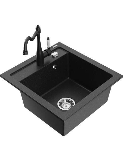 Mexen Vito zlewozmywak granitowy 1-komorowy z baterią kuchenną Carla, czarny/srebrny metalik - 6503-73-670700-70