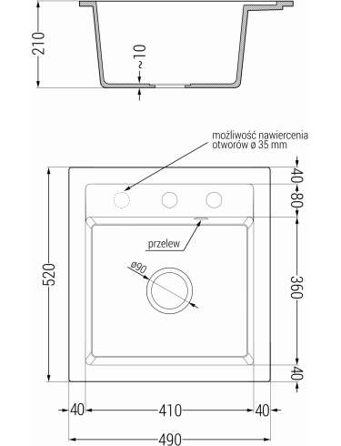 Dane techniczne: Zlewozmywak: Rozmiar: 520x490x210 mm Głębokość komory: 200 mm Wymiary komory: 410x360 mm Średnica odpływu: ø90 mm Typ: 1-komorowy Rodzaj: Wpuszczany w blat Kolor: Czarny nakrapiany Wykończenie syfonu: Chrom Materiał: Granit (80% kruszywo granitowe 20% żywice) Otwór przelewowy: Tak Otwory: ( bateria, automat ) 2 Wysoka odporność na zarysowania i przebarwienia Odporność na szok termiczny Powierzchnia ułatwiająca czyszczenie Jeden dodatkowy podfrezowany otwór do samodzielnego wybicia ø35 Bateria kuchenna: Materiał: Mosiądz Kolor: Czarny Głowica: Ceramiczna Perlator: Tak Typ: Dwuuchwytowa Zasięg wylewki: 235 mm Wysokość baterii: 315 mm Bateria dwugłowicowa z dodatkowym filtrem do wody pitnej |