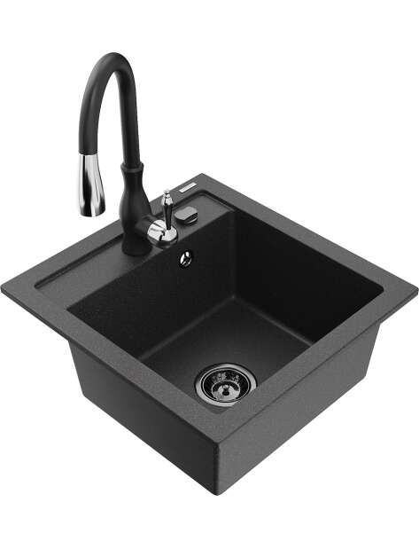 Mexen Vito zlewozmywak granitowy 1-komorowy z baterią kuchenną Savita, czarny nakrapiany - 6503-76-672601-70-B