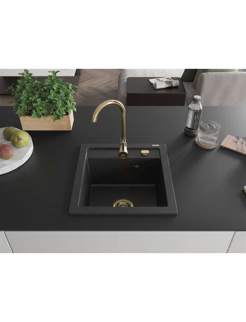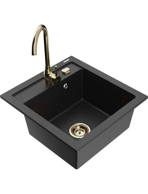 Mexen Vito zlewozmywak granitowy 1-komorowy z baterią kuchenną Telma, czarny/srebrny metalik - 6503-73-670200-50