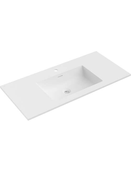 Specyfikacja produktu:Rozmiar: 101x46,5x16,5 cm Głębokość: 11,9 cm Typ: Wpuszczana w blat Kolor: Biały mat Materiał: Konglomerat Otwór przelewowy: Tak Otwór na baterie: Tak |