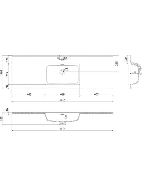 Specyfikacja produktu:Rozmiar: 141x46,5x16,5 cm Głębokość: 11,9 cm Typ: Wpuszczana w blat Kolor: Czarny mat Materiał: Konglomerat Otwór przelewowy: Tak Otwór na baterie: Tak |