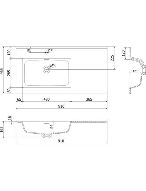 Specyfikacja produktu:Rozmiar: 91x46,5x16,5 cm Głębokość: 11,9 cm Typ: Wpuszczana w blat, Lewa Kolor: Czarny mat Materiał: Konglomerat Otwór przelewowy: Tak Otwór na baterie: Tak |