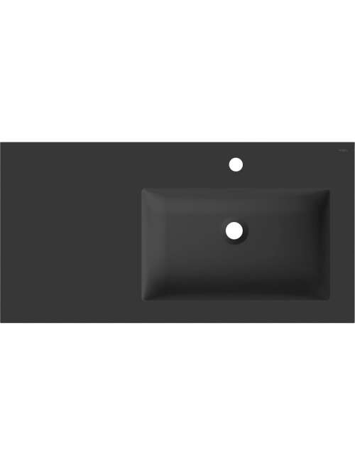 Specyfikacja produktu:Rozmiar: 91x46,5x16,5 cm Głębokość: 11,9 cm Typ: Wpuszczana w blat, Prawa Kolor: Czarny mat Materiał: Konglomerat Otwór przelewowy: Tak Otwór na baterie: Tak |
