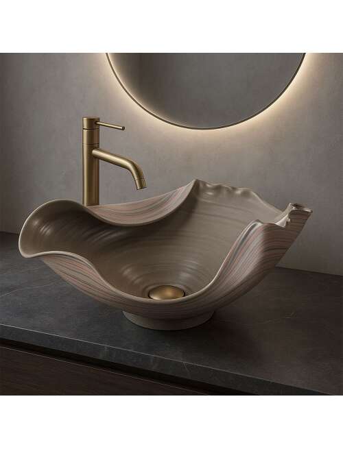 | Prezentowana umywalka to część autorskiej kolekcji Hand Made Art marki Rea – Łazienka z Wyobraźnią. Każdy egzemplarz z tej serii powstaje w całości ręcznie, z pełnym poszanowaniem dla materiału i formy. Każda sztuka, tworzona poza schematem seryjnej produkcji, wyróżnia się unikalną formą i subtelnymi niuansami ręcznego wykonania – widocznymi w linii, strukturze i detalach wykończenia.