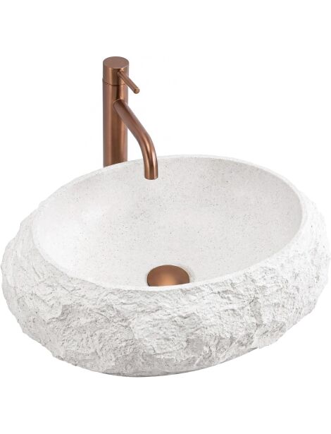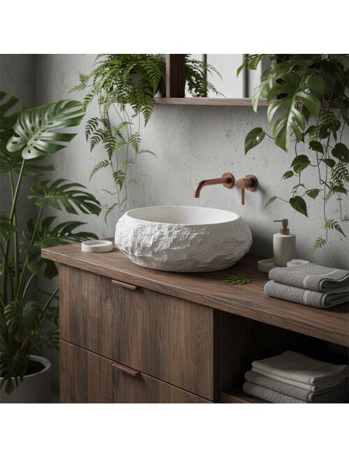 | Postaw na naturalny akcent w swojej łazience, wybierając umywalkę nablatową Rea Mika Ivory. Model ten przyciąga wzrok jasną kolorystyką i intrygującym zestawieniem powierzchni. Surowa, chropowata faktura zewnętrzna kontrastuje tu z idealnie gładkim wnętrzem misy. Całość powstała z nowoczesnego sztucznego kamienia kompozytowego Artificial Stone, gwarantującego długowieczność produktu.Odcień Ivory – umywalka utrzymana jest w jasnej, ciepłej tonacji złamanej bieli. Ten uniwersalny kolor doskonale rozświetla wnętrze i wpisuje się w estetykę naturalnych kamieni, takich jak piaskowiec czy wapień.Właściwości kompozytu – zastosowanie materiału Artificial Stone zapewnia umywalce wysoką twardość i wytrzymałość, a jednocześnie sprawia, że jest ona przyjemniejsza w dotyku niż ceramika.Higieniczny środek – wnętrze misy zostało wypolerowane na gładko, co zapobiega osadzaniu się brudu i ułatwia codzienne mycie, mimo porowatej obudowy zewnętrznej.Odporność użytkowa – innowacyjny materiał jest niewrażliwy na działanie wilgoci, wysokie temperatury oraz przypadkowe uderzenia, zachowując estetyczny wygląd przez lata.Instalacja na blacie – model przeznaczony do montażu na szafce lub blacie łazienkowym, co pozwala w pełni zaprezentować jego dekoracyjne walory.Umywalka Rea Mika Ivory to doskonała propozycja dla miłośników stylu japandi, skandynawskiego oraz rustykalnego. Jasna bryła o kamiennym charakterze nie tylko spełnia funkcję użytkową, ale staje się subtelną ozdobą, rozjaśniającą przestrzeń łazienki. |