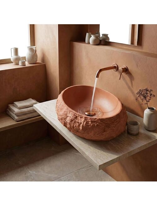 Gładkie wnętrze misy gwarantuje łatwość utrzymania w czystości, a surowa, kamienna faktura zewnętrzna dodaje wnętrzu charakteru i niepowtarzalnego uroku. To propozycja dla osób poszukujących eleganckiego, designerskiego elementu wyposażenia łazienki, który będzie równie praktyczny, co efektowny. |