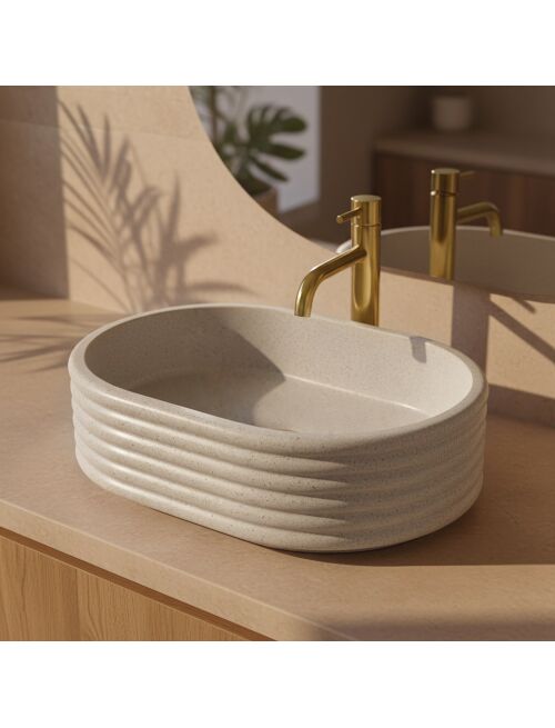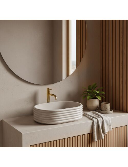 | Wprowadź do swojej łazienki powiew świeżości i elegancji z umywalką nablatową Rea Nicoletta Beige. Model ten zachwyca unikalną strukturą opartą na poziomych liniach oraz jasną, naturalną barwą. Wykonana z trwałego kompozytu Artificial Stone, łączy w sobie dekoracyjny design z funkcjonalnością na lata.Poziome ryflowanie – korpus misy zdobią charakterystyczne, horyzontalne pierścienie. Ten trójwymiarowy wzór nadaje bryle nowoczesnego rytmu i wyróżnia ją na tle standardowych umywalek.Odcień Beige Stone – jasna, beżowa powierzchnia wzbogacona jest o delikatną, ziarnistą strukturę. Imituje to wygląd naturalnego piaskowca, wprowadzając do wnętrza ciepło i przytulny klimat.Materiał Artificial Stone – nowoczesny sztuczny kamień kompozytowy zapewnia umywalce wysoką odporność na uszkodzenia mechaniczne i przebarwienia. Jest on również przyjemniejszy i cieplejszy w dotyku niż tradycyjne materiały.Gładkie wnętrze – mimo ryflowanej obudowy, środek misy jest idealnie gładki i wyprofilowany, co ułatwia codzienne mycie i zapewnia swobodny odpływ wody.Montaż nablatowy – model przeznaczony do instalacji na blacie lub szafce, co pozwala w pełni wyeksponować jego dekoracyjną, prążkowaną formę.Umywalka Rea Nicoletta Beige to świetny wybór do aranżacji w stylu boho, skandynawskim czy japandi. Jej ciepła kolorystyka i ciekawa faktura sprawiają, że staje się ona subtelną, ale efektowną ozdobą strefy umywalkowej. |