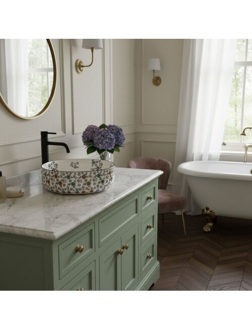 | Przenieś swoją łazienkę w świat rustykalnej elegancji dzięki umywalce nablatowej Rea Stefania Fiori. Ten wyjątkowy model wyróżnia się bogatym, wielokolorowym wzorem kwiatowym, który zdobi zarówno zewnętrzną powierzchnię, jak i wnętrze misy. Wykonana z najwyższej jakości ceramiki sanitarnej, łączy w sobie artystyczny design z praktycznym zastosowaniem, idealnie pasując do wnętrz w stylu vintage.Podwójne zdobienie – unikalny, ludowy wzór kwiatowy znajduje się zarówno na zewnętrznej ściance, jak i wewnątrz umywalki.Wysokiej jakości ceramika sanitarna – gwarantuje odporność na codzienne użytkowanie oraz jest wyjątkowo łatwa w utrzymaniu czystości.Montaż nablatowy – pozwala na nowoczesną aranżację i pełne wyeksponowanie piękna wzorzystego korpusu na dowolnym blacie.Okrągły kształt misy – klasyczna i ponadczasowa forma, która jest zarówno elegancka, jak i praktyczna.Brak otworu na baterię – konstrukcja dedykowana do montażu z bateriami wysokimi (stojącymi) lub bateriami podtynkowymi (ściennymi).Brak otworu przelewowego – podkreśla minimalistyczny i gładki design wewnętrznej misy, zapewniając idealnie gładką powierzchnię.Umywalka nablatowa Rea Stefania Fiori to doskonały wybór dla osób, które cenią sobie oryginalność i chcą wprowadzić do wnętrza wyrazisty, dekoracyjny akcent. Perfekcyjna w każdym detalu, będzie centralnym punktem każdej rustykalnej lub eklektycznej łazienki. |