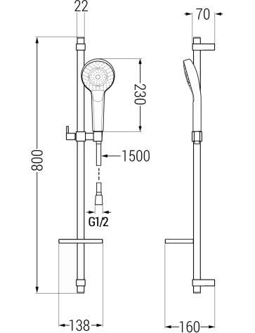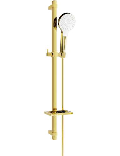 Specyfikacja produktu:Materiał drążka: Stal nierdzewna, ABS Wykończenie drążka: Złoty Wysokość: 800 mm Szerokość drążka: 22 mm Odległość od ściany: 160 mm Mydelniczka Przesuwny uchwyt na słuchawkę Regulowane uchwyty montażowe Materiał słuchawki: Tworzywo sztuczne Wykończenie słuchawki: Złoty/Biały Ilość funkcji: 3 Zmiana strumienia przyciskiem Materiał wąż: PVC Wykończenie węża: Złoty Długość węża: 150 cm Mosiężne końcówki Gładka powierzchnia ułatwia utrzymanie w czystości Obrotowe końcówki zapobiegają skręcaniu Elastyczny materiał wytrzymały na rozciąganie oraz zginanieanie |