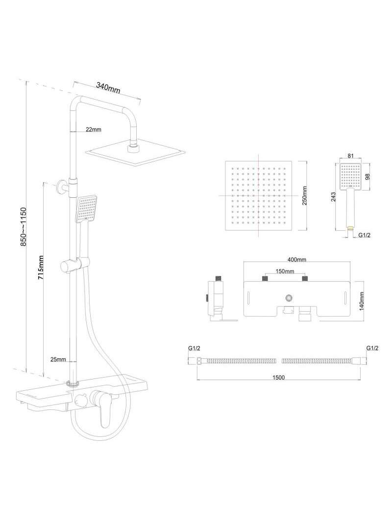 В комплект входит механический смеситель для душа со смесителем температуры, регулировкой и переключателем потока воды между насадкой тропического душа, насадкой для душа и изливом. Кроме того, панель оборудована широкой полкой для удобных аксессуаров, к которой крепится аккумулятор и носик. Поверхность полки матовая. Керамическая головка смесителя (35 мм) гарантирует долговечность и прочность. В комплект входит стильная насадка для тропического душа 25 x 25 см и матовая черная насадка для душа — оба элемента с современной системой ANTI-CALC. Дизайн комплекта подчинен последним тенденциям – он выглядит очень элегантно и прекрасно вписывается в современную ванную комнату.Современный уникальный дизайн и высочайшее качество, неагрессивные материалы обеспечивают долговечность и надежность нашей продукции на долгие годы.