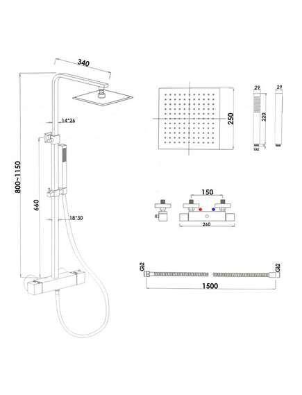 • Смеситель – латунный корпус с керамическим термостатическим картриджем.
