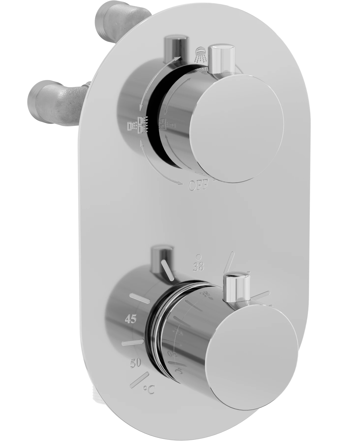 | Технические характеристики: Материал: Латунный корпус Головка: Термостат Цвет: хром / Соединение: 2x G 1/2 "вход и 3x G 1/2" выход Блокировка горячей воды при 38V ° C Комплект: полоскание и поверхностная часть < br /> |