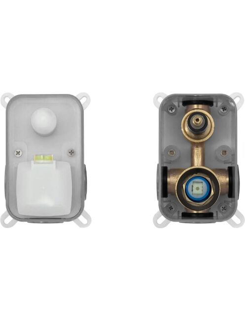 Dodatkowym atutem zestawu jest system zabudowy Box, który umożliwia szybki i wygodny montaż baterii podtynkowej. Wykonany z tworzywa sztucznego i elementów mosiężnych, zapewnia niezawodność i długowieczność. Box wyposażono w część maskującą, która chroni elementy wewnętrzne podczas montażu, a wbudowana poziomica pozwala na precyzyjne ustawienie. System ułatwia również dostęp do wewnętrznych komponentów po instalacji, co czyni konserwację prostą i bezproblemową. |