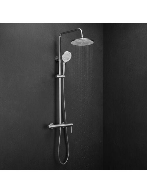 | Poszukujesz funkcjonalnego i stylowego rozwiązania do swojej strefy prysznicowej? Sprawdź zestaw prysznicowy natynkowy Rea Foss Clif w nowoczesnym wykończeniu Nikiel Szczotkowany. To idealna propozycja dla osób ceniących minimalistyczny design i przemyślane funkcje. Solidny, mosiężny korpus baterii oraz regulowana wysokość deszczownicy zapewniają komfort użytkowania.Kolor Nikiel Szczotkowany – estetyczne wykończenie (w technologii PVD), które doskonale komponuje się z nowoczesnymi aranżacjami.Korpus baterii z mosiądzu – gwarantuje solidność konstrukcji i odporność na codzienne użytkowanie.Wielofunkcyjna słuchawka prysznicowa – oferuje nie tylko standardowe tryby, ale także innowacyjny strumień typu “bidetka” umieszczony na górze słuchawki, co znacząco zwiększa funkcjonalność łazienki.Głowica ceramiczna – precyzyjny mechanizm pozwalający na płynną i wygodną regulację temperatury oraz siły strumienia wody.System Anti-Calc – dysze w słuchawce i deszczownicy ułatwiają usuwanie osadów z kamienia, co pomaga w utrzymaniu czystości zestawu.Montaż natynkowy – standardowy rozstaw przyłączy 150 mm pozwala na łatwą i szybką instalację.Zestaw prysznicowy Rea Foss Clif to doskonały wybór dla osób ceniących nowoczesny design i ponadprzeciętną funkcjonalność. Ten zestaw REA podnosi komfort codziennej kąpieli, oferując niezawodność i stylowy wygląd w Twojej łazience. |