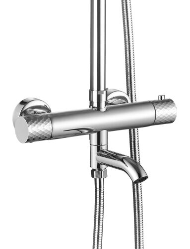 Prezentujemy Państwu zestaw prysznicowy natynkowy z serii Lungo Diamond z termostatem oraz wylewką. Jest to zestaw zaprojektowany z myślą o wygodzie i funkcjonalności. Modny kształt elementów prysznicowych został pokryty 4-krotną powłoką najwyższej jakości. Dzięki tej technice bateria jest chroniona przed korozją i odbarwieniami. W komplecie znajduje się ultra deszczownica, bateria z elementami, waż ze słuchawką oraz z wylewką. Zestaw jest idealny dla osób, które szukają nietuzinkowych rozwiązań i chcą stworzyć oryginalną i niepowtarzalną łazienkę swoich marzeń. Instrukcja czyszczenia głowicy termostatycznej w zestawie prysznicowym: