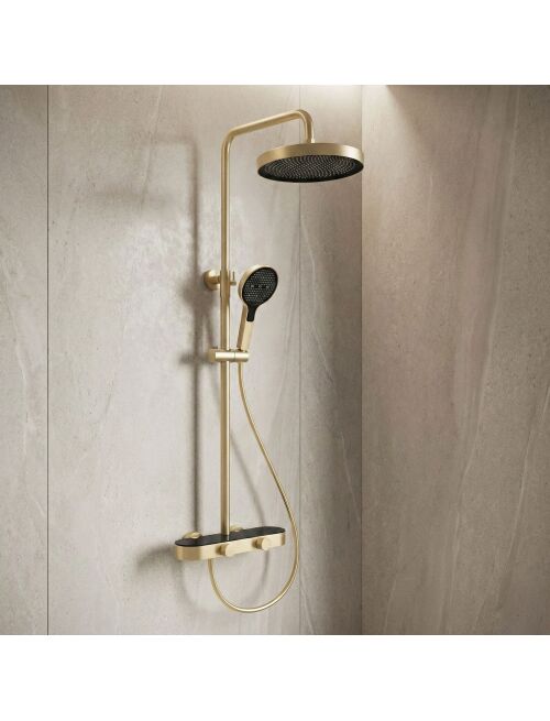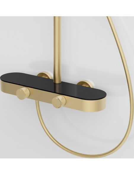 | Połącz klasyczną obsługę z nowoczesnym designem dzięki zestawowi prysznicowemu natynkowemu Rea Creo Brush Gold. Ten model w wykończeniu szczotkowanego złota to idealna propozycja dla zwolenników tradycyjnych rozwiązań w nowej odsłonie. Zestaw wyposażony jest w intuicyjny system pokręteł oraz innowacyjną słuchawkę ułatwiającą utrzymanie czystości.Kolor Brush Gold – szlachetny, złoty odcień o subtelnie szczotkowanej strukturze. Satynowe wykończenie nie tylko prezentuje się elegancko, ale jest też praktyczne – na szczotkowanej powierzchni znacznie mniej widać krople wody i odciski palców.Powłoka PVD – złoty kolor został naniesiony w technologii PVD (Physical Vapor Deposition). To najtrwalsza metoda barwienia armatury, gwarantująca wyjątkową odporność na zarysowania, matowienie i korozję.System dwóch pokręteł – bateria sterowana jest za pomocą dwóch ergonomicznych gałek. Jedna służy do precyzyjnego ustawienia temperatury wody, druga pełni funkcję przełącznika strumienia między deszczownicą, słuchawką, a wylewką. To niezawodne rozwiązanie, które doceni każdy użytkownik.Słuchawka z funkcją Bidetty – rączka natrysku kryje w sobie dodatkową funkcjonalność. Posiada przycisk z tyłu oraz dyszę na szczycie obudowy. Po aktywacji zmienia się w bidetkę, co ułatwia sprzątanie kabiny, mycie brodzika czy napełnianie wysokich naczyń.Dyskretna wylewka kaskadowa – korpus baterii wyposażony jest w szeroki wylot kaskadowy. Umożliwia on szybkie napełnienie wiadra, miski lub sprawdzenie temperatury wody bezpośrednio przy baterii.Materiały i regulacja – sercem zestawu jest solidny korpus z mosiądzu. Deszczownica i słuchawka wykonane z lekkiego tworzywa ABS posiadają system zapobiegający osadzaniu się kamienia. Całość zamocowana jest na drążku z regulowaną wysokością.Zestaw Rea Creo to armatura, która łączy piękno z użytecznością. Szczotkowana, złota powłoka PVD stanowi wyrazisty akcent we wnętrzu, a funkcjonalna słuchawka i proste sterowanie pokrętłami sprawiają, że jest to niezwykle ergonomiczny wybór. |