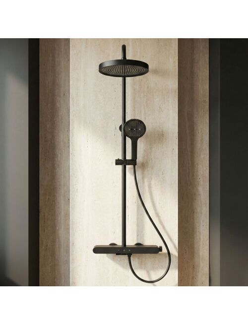 | Odkryj nowy standard kąpieli dzięki zestawowi prysznicowemu natynkowemu Rea Farel Black. Ten model to kwintesencja nowoczesnego designu, która łączy w sobie elegancję czarnej armatury z innowacyjną funkcjonalnością. Zamiast standardowych rozwiązań, Farel oferuje wygodne sterowanie klawiszowe oraz unikalne rozwiązania ułatwiające utrzymanie czystości w łazience.Intuicyjny panel Piano – sercem zestawu jest bateria wyposażona w system estetycznych przycisków (klawiszy). Pozwalają one na błyskawiczne i wygodne przełączanie strumienia wody między deszczownicą, słuchawką, a wylewką.Słuchawka z funkcją Bidetty – to rewolucyjne rozwiązanie w armaturze prysznicowej. Słuchawka posiada przycisk z tyłu obudowy oraz dodatkowy wylot na szczycie. Po aktywacji zmienia się w bidetkę, idealną do szybkiego opłukania kabiny, umycia brodzika czy napełnienia wysokiego wiadra.Dyskretna wylewka kaskadowa – baterii posiada również wbudowaną wylewkę wannową. Szeroki strumień kaskadowy pozwala wygodnie umyć ręce lub napełnić miskę, bez konieczności używania prysznica ręcznego.Technologia Electroplating – głęboka, matowa czerń została uzyskana w procesie galwanizacji. Dzięki temu powłoka jest idealnie gładka, trwała i znacznie bardziej odporna na uszkodzenia mechaniczne oraz działanie wilgoci niż tradycyjne malowanie proszkowe.Solidna konstrukcja – korpus baterii wykonany jest z trwałego mosiądzu, co gwarantuje stabilność i niezawodność przez lata. Deszczownica i słuchawka z tworzywa ABS zapewniają lekkość i łatwość w czyszczeniu dysz z osadów wapiennych.Komfort użytkowania – zestaw wyposażony jest w drążek z regulacją wysokości, co pozwala na idealne dopasowanie deszczownicy do wzrostu każdego domownika oraz wymiarów kabiny prysznicowej.Zestaw Rea Farel Black to idealny wybór do nowoczesnych łazienek w stylu loft i industrial. Zestaw został wyposażony w zawór zwrotny, który zapobiega cofaniu się wody i wspiera bezpieczne, prawidłowe działanie instalacji. Jego przemyślana konstrukcja sprawia, że codzienne rytuały stają się prostsze. |