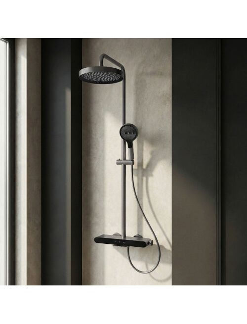 | Nadaj swojej łazience wyjątkowego, industrialnego charakteru dzięki zestawowi prysznicowemu natynkowemu Rea Farel Titan. Ten model w wykończeniu szczotkowanego tytanu to propozycja dla osób szukających alternatywy dla czerni i chromu. Zestaw łączy surowy, metaliczny design z innowacyjną funkcjonalnością sterowania i utrzymania czystości.Kolor Tytanowy – elegancki, grafitowy odcień o subtelnie szczotkowanej strukturze. Satynowe wykończenie nie tylko prezentuje się nowocześnie, ale jest też praktyczne – na szczotkowanej powierzchni znacznie mniej widać krople wody i odciski palców.Powłoka PVD – tytanowy kolor został naniesiony w technologii PVD (Physical Vapor Deposition). To najtrwalsza metoda barwienia armatury, gwarantująca wyjątkową odporność na zarysowania, matowienie i korozję.Intuicyjny panel Piano – bateria sterowana jest za pomocą trzech mechanicznych przycisków (klawiszy). To wygodne rozwiązanie pozwala błyskawicznie przełączać strumień wody między deszczownicą, słuchawką, a wylewką.Słuchawka z funkcją Bidetty – słuchawka kryje w sobie dodatkową funkcjonalność. Posiada przycisk z tyłu oraz dyszę na szczycie obudowy. Po aktywacji zmienia się w bidetkę, co ułatwia sprzątanie kabiny, mycie brodzika czy napełnianie misek.Dyskretna wylewka kaskadowa – korpus baterii wyposażony jest w strumień kaskadowy. Umożliwia on szybkie napełnienie miski, wiadra lub sprawdzenie temperatury wody bezpośrednio przy baterii.Wytrzymałe materiały – sercem zestawu jest solidny korpus z mosiądzu. Deszczownica i słuchawka wykonane z lekkiego tworzywa ABS posiadają system zapobiegający osadzaniu się kamienia. Komfort dla każdego – zestaw wyposażony jest w drążek z regulacją wysokości, co pozwala na idealne dopasowanie położenia deszczownicy do wzrostu domowników oraz wysokości sufitu.Zestaw Rea Farel Titanium to połączenie technologicznej precyzji z unikalnym designem. Zestaw został wyposażony w zawór zwrotny, który zapobiega cofaniu się wody i wspiera bezpieczne, prawidłowe działanie instalacji. Szczotkowana, tytanowa powłoka PVD stanowi nowoczesny akcent we wnętrzu, a zaawansowana funkcjonalność sprawia, że codzienne użytkowanie staje się czystą przyjemnością. |