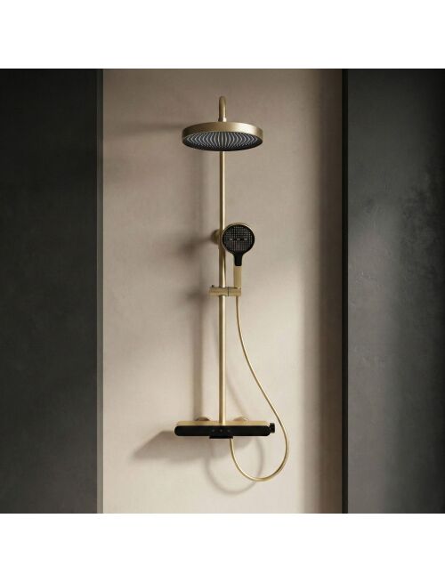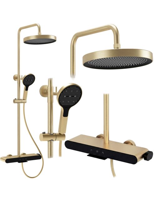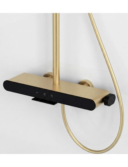 | Nadaj swojej łazience wyjątkowego, eleganckiego charakteru dzięki zestawowi prysznicowemu natynkowemu Rea Farel Brush Gold. Ten model w wykończeniu szczotkowanego złota to propozycja dla osób szukających alternatywy dla czerni i chromu. Zestaw łączy szlachetny, metaliczny design z innowacyjną funkcjonalnością sterowania i utrzymania czystości.Kolor Brush Gold – szlachetny, złoty odcień o subtelnie szczotkowanej strukturze. Satynowe wykończenie nie tylko prezentuje się nowocześnie, ale jest też praktyczne – na szczotkowanej powierzchni znacznie mniej widać krople wody i odciski palców.Powłoka PVD – złoty kolor został naniesiony w technologii PVD (Physical Vapor Deposition). To najtrwalsza metoda barwienia armatury, gwarantująca wyjątkową odporność na zarysowania, matowienie i korozję.Intuicyjny panel Piano – bateria sterowana jest za pomocą trzech mechanicznych przycisków (klawiszy). To wygodne rozwiązanie pozwala błyskawicznie przełączać strumień wody między deszczownicą, słuchawką a wylewką, bez konieczności kręcenia pokrętłami.Słuchawka z funkcją Bidetty – rączka natrysku kryje w sobie dodatkową funkcjonalność. Posiada przycisk z tyłu oraz dyszę na szczycie obudowy. Po aktywacji zmienia się w bidetkę, co ułatwia sprzątanie kabiny, mycie brodzika czy napełnianie wysokich naczyń.Dyskretna wylewka kaskadowa – korpus baterii wyposażony jest w szeroki wylot kaskadowy. Umożliwia on szybkie napełnienie wiadra, miski lub sprawdzenie temperatury wody bezpośrednio przy baterii.Materiały i regulacja – sercem zestawu jest solidny korpus z mosiądzu. Deszczownica i słuchawka wykonane z lekkiego tworzywa ABS posiadają system zapobiegający osadzaniu się kamienia. Całość zamocowana jest na drążku z regulowaną wysokością.Zestaw Rea Farel Brush Gold to połączenie technologicznej precyzji z unikalnym designem. Zestaw został wyposażony w zawór zwrotny, który zapobiega cofaniu się wody i wspiera bezpieczne, prawidłowe działanie instalacji. Szczotkowana, złota powłoka PVD stanowi wyrazisty akcent we wnętrzu, a funkcja słuchawka i wylewka sprawia, że jest to jeden z najbardziej funkcjonalnych zestawów na rynku. |