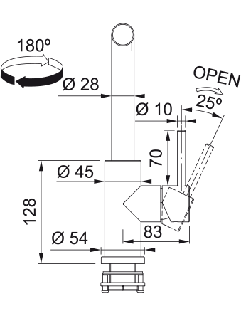 Вращение крана 180°