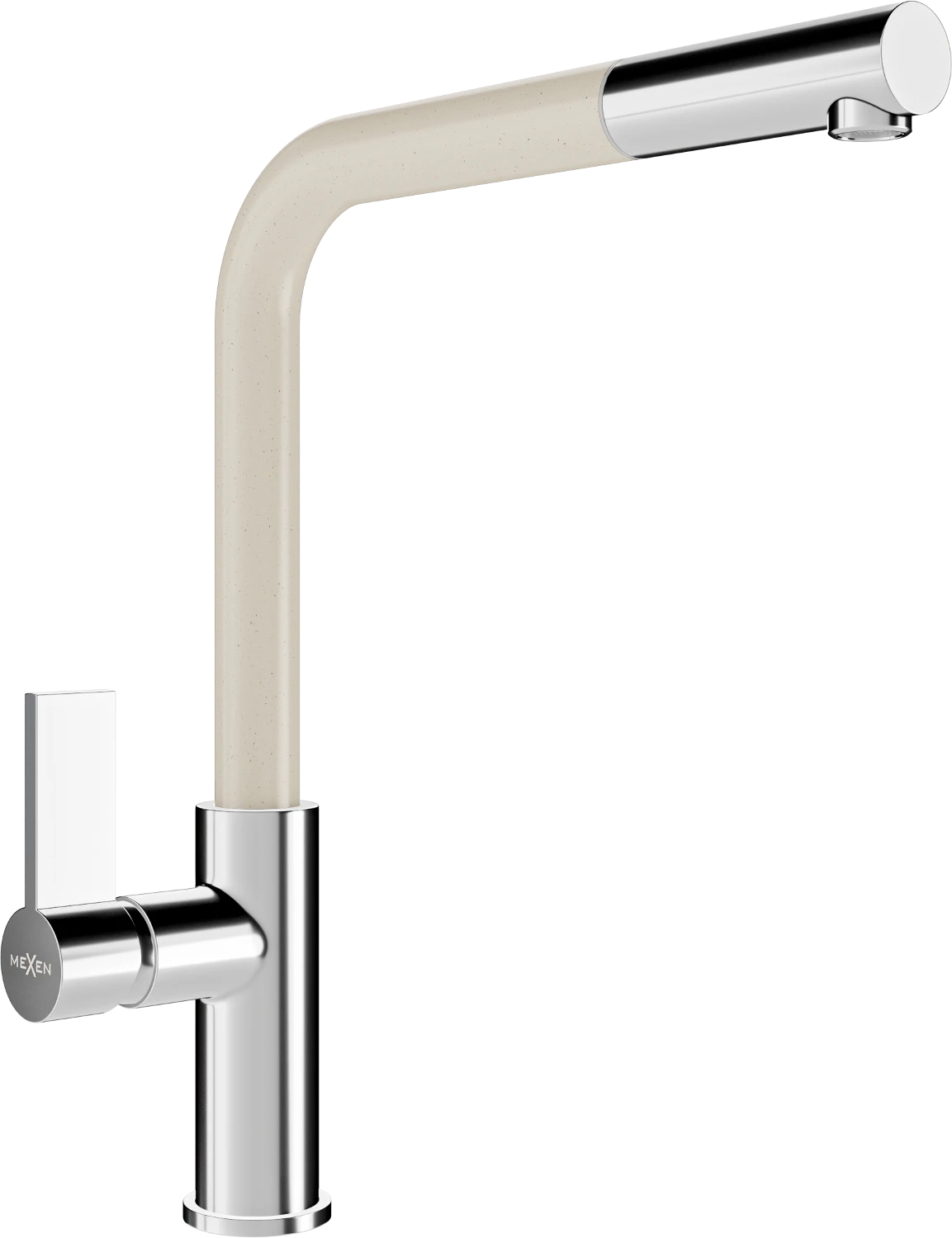 | Технические характеристики: Материал: Латунь Цвет: хром/бежевый Головка: керамика < / p> Perlator: Да Высота: 307 мм Диапазон излива: 245 мм Тип: однорычажный