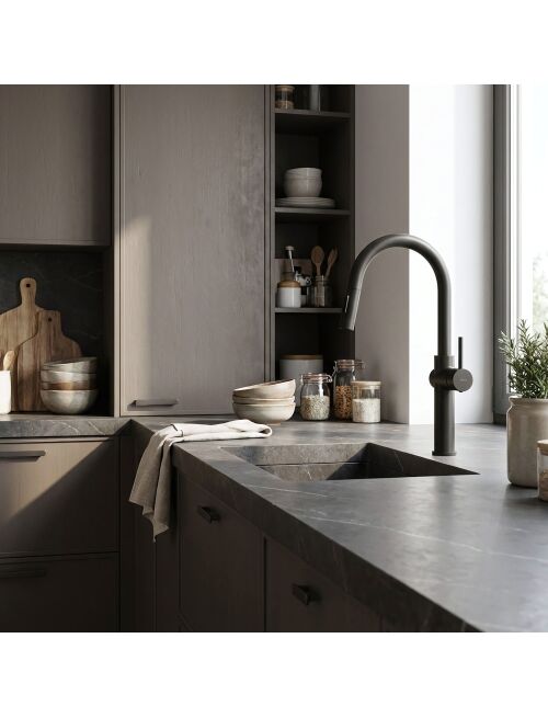 | Zwiększ funkcjonalność swojej strefy zmywania dzięki baterii kuchennej Rea Fresh High Black. Ten model w wykończeniu czarny mat łączy w sobie nowoczesny, minimalistyczny design z maksymalną wygodą użytkowania. Solidny korpus wykonany z mosiądzu oraz trwała powłoka uzyskana w procesie electroplatingu to gwarancja niezawodności w wymagających warunkach kuchennych.Wyciągana końcówka wylewki – praktyczne rozwiązanie na elastycznym wężu, które ułatwia mycie dużych naczyń, płukanie warzyw oraz dokładne czyszczenie komór zlewozmywaka.Przełącznik strumienia wody – ergonomiczny przycisk umieszczony na wylewce pozwala na błyskawiczną zmianę rodzaju strumienia, dostosowując go do aktualnych potrzeb (strumień ciągły lub prysznicowy).Wysoka, obrotowa wylewka – konstrukcja z możliwością obrotu 360 stopni zapewnia duży zasięg pracy i swobodę ruchów, co jest nieocenione przy napełnianiu wysokich garnków.Korpus z mosiądzu – materiał zapewniający stabilność baterii oraz wysoką odporność na korozję i zmiany ciśnienia wody.Powłoka Electroplating – czarne, matowe wykończenie nałożone metodą galwaniczną (electroplating). Technologia ta zapewnia idealnie gładką powierzchnię oraz wyjątkową odporność na ścieranie i uszkodzenia mechaniczne.Design Black Mat – smukła linia i głęboka czerń doskonale kontrastują z jasnymi blatami i wpisują się w trendy kuchni loftowych oraz skandynawskich.Bateria kuchenna Rea Fresh High Black to narzędzie dla wymagających. Zastosowanie technologii electroplatingu sprawia, że jej czarna powłoka zachowuje nienaganny wygląd przez lata, stanowiąc elegancki i trwały element wyposażenia. |