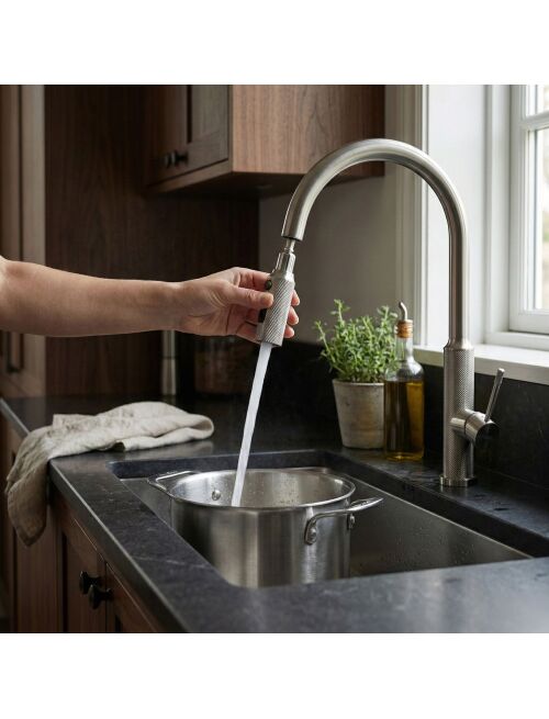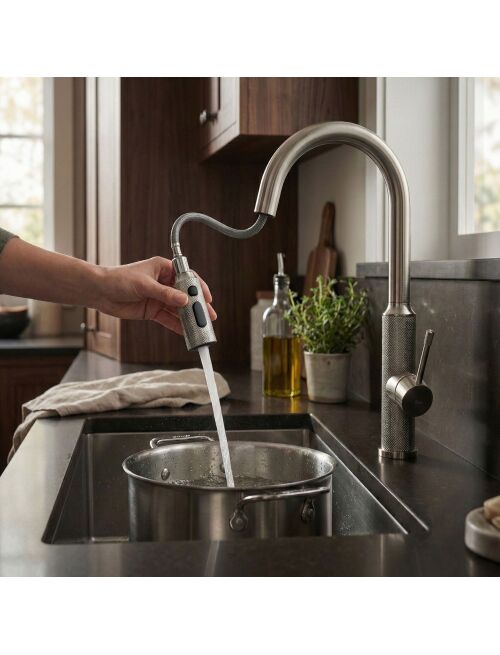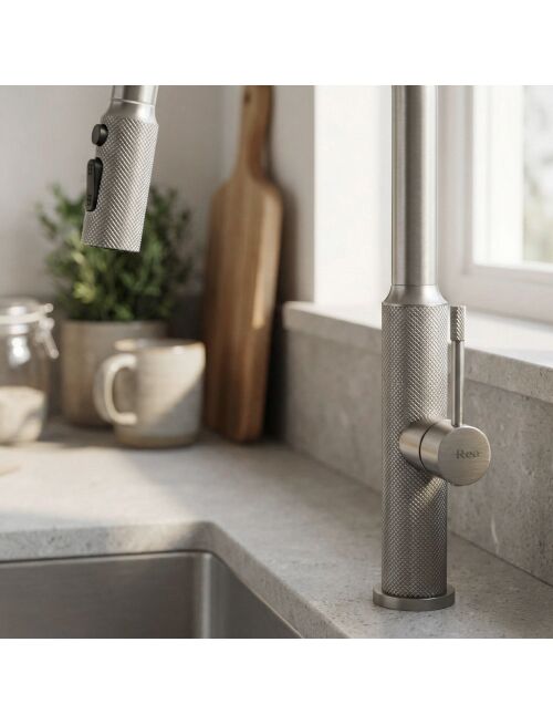 | Zadbaj o funkcjonalność i nowoczesny styl swojej kuchni dzięki baterii kuchennej Rea Master. Model ten to połączenie industrialnego wzornictwa z zaawansowaną technologią. Wykonana z solidnego mosiądzu i wykończona w odcieniu szczotkowanego niklu, stanowi trwałe i estetyczne rozwiązanie dla wymagających użytkowników.Wykończenie Brushed Nickel – bateria pokryta jest powłoką PVD w kolorze szczotkowanego niklu. Technologia ta zapewnia wyjątkową odporność na zarysowania i matowienie, a satynowa powierzchnia ułatwia utrzymanie czystości.Wyciągana wylewka – ruchoma wylewka na elastycznym wężu to klucz do wygody w kuchni. Umożliwia swobodne mycie dużych naczyń, płukanie zlewu czy napełnianie wysokich garnków stojących na blacie.Zmiana strumienia wody – ergonomiczny przełącznik umieszczony na wylewce pozwala na błyskawiczną zmianę trybu pracy: ze skoncentrowanego strumienia ciągłego na rozproszony natrysk, idealny do płukania warzyw i owoców.Mosiężny korpus – konstrukcja odlana z wysokogatunkowego mosiądzu gwarantuje stabilność, szczelność oraz długą żywotność armatury.Ozdobne radełkowanie – charakterystycznym elementem modelu Master jest diamentowa struktura na uchwycie i końcówce wylewki. To antypoślizgowe wykończenie nie tylko dodaje baterii technicznego charakteru, ale też ułatwia obsługę mokrą dłonią.Bateria Rea Master Nikiel to propozycja do nowoczesnych i loftowych kuchni. Jej surowa, stalowa kolorystyka oraz wysoka funkcjonalność sprawiają, że codzienne czynności stają się prostsze, a strefa zmywania zyskuje profesjonalny wygląd. |