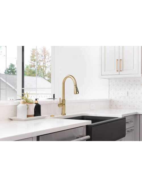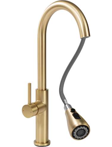 Podstawa każdej funkcjonalnej kuchni to odpowiednia bateria kuchenna. Mosiężny korpus to gwarancja trwałości i stabilności baterii. Szczotkowana powierzchnia w kolorze złotym jest najnowszym trendem. Nadaje ona baterii, oprócz niezwykłego wyglądu, odporności na zadrapania i zanieczyszczenia. Długoletnią niezawodność gwarantuje użycie ceramicznej głowicy.