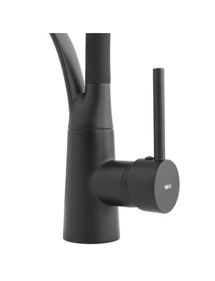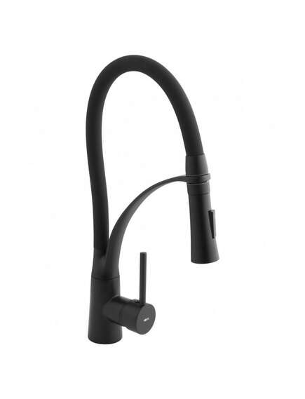 Гибкий смеситель для кухни - черныйСмеситель для мойки, однорычажный. Изготовлен из высококачественной латуни. Керамическая головка обеспечивает долгий срок службы и долговечность батареи.