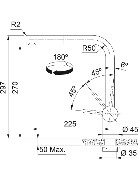 Диаметр отверстия под смеситель 35 мм