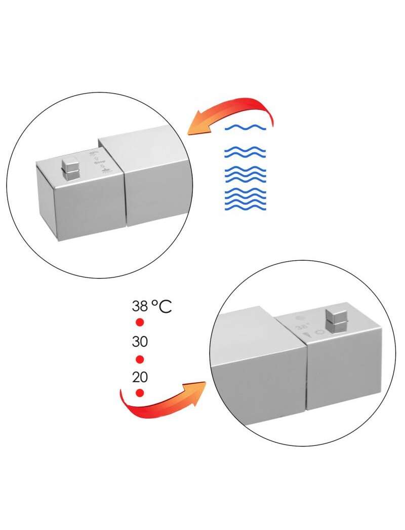 Термостатический настенный смеситель для душа с возможностью блокировки горячей воды при 38°C. Изготовлен из высококачественной хромированной латуни. Его керамическая головка (35 мм) гарантирует долговечность и прочность. В набор входят все элементы, необходимые для сборки.Благодаря универсальному соединению смеситель подходит ко всем душевым гарнитурам.