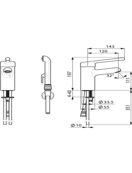 Смеситель для умывальника с ручным душем Bidetta с возможностью термической дезинфекции. Прочная длинная рукоятка обеспечивает удобство использования всем пользователям в любых ситуациях. Фиксированный излив и ламинарная струя. Душевой шланг 1.5 м, настенный держатель, две пары быстроразъёмных соединителей и подводка из медных трубок Ø 10 мм