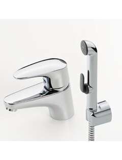 Смеситель для умывальника с ручным душем Bidetta- длина шланга 1,5 м.;- настенный держатель.Двухкомпонентная прочная рукоятка оснащена эко-кнопкой для ограничения температуры и расхода воды. При нажатии эко-кнопки расход можно увеличить.