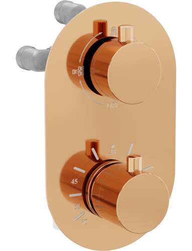 Specyfikacja produktu:Materiał: Korpus mosiądz Głowica: Termostatyczna Kolor: Różowe złoto Podłączenie: 2x wejście G 1/2" oraz 3x wyjście G 1/2" Blokada gorącej wody przy 38° C Komplet: część podtynkowa oraz natynkowa |