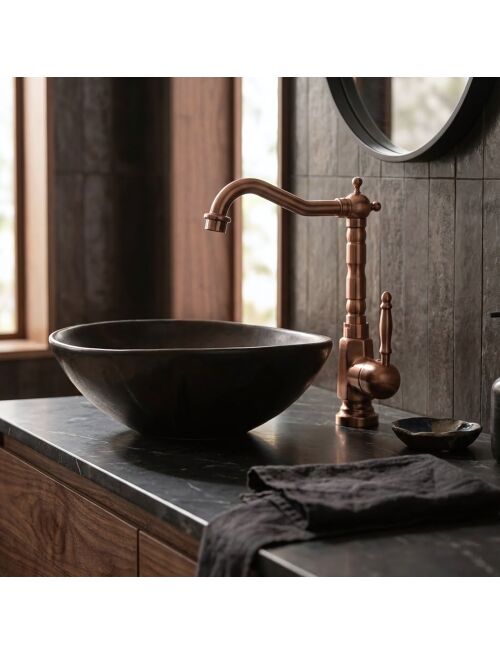 | Bateria umywalkowa wysoka Rea Bona to model zaprojektowany do umywalek nablatowych, utrzymany w estetyce Retro. Solidna konstrukcja oraz wykończenie w kolorze Miedź Szczotkowana sprawiają, że jest to trwały i funkcjonalny element wyposażenia łazienki.Przeznaczenie do umywalek nablatowych – wysoki korpus zapewnia wygodę użytkowania i pasuje do różnorodnych aranżacji.Styl Retro / Vintage – klasyczne wzornictwo z charakterystycznymi detalami wizualnymi.Korpus z mosiądzu – materiał gwarantujący wysoką trwałość, stabilność i odporność na korozję.Powłoka PVD Miedź Szczotkowana – zaawansowana technologia nakładania koloru zapewnia odporność na zarysowania i uszkodzenia mechaniczne.Obracana wylewka – praktyczne rozwiązanie, które zwiększa zasięg strumienia wody i ułatwia codzienne czynności.Bateria Rea Bona to połączenie klasycznego designu z wysoką jakością wykonania. Mosiężny korpus i trwała powłoka PVD zapewniają niezawodność, a obracana wylewka podnosi komfort użytkowania. |